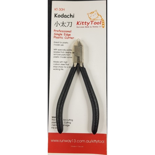 Aptly named “Kodachi” which in Japanese roughly translates to “little battle sword”, this new plastic cutter from Runway 13 has a single sharp blade to effortlessly slice plastic parts off runners and gates with little pressure resulting in a cleaner cut and less chance of damage.