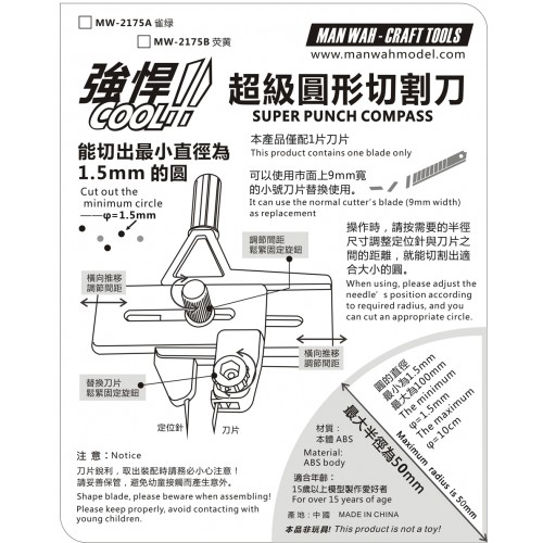Suitable for cutting circles on paper, masking task or thin plasticCircle diameter 3mm to 100mUses c..