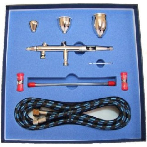 - Gravity feed with 3 detachable paint cups in different sizes. (3, 5 and 12 ml cups included)